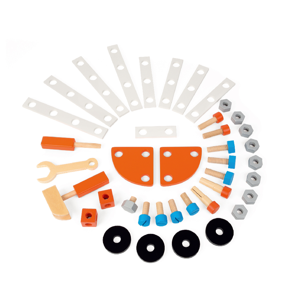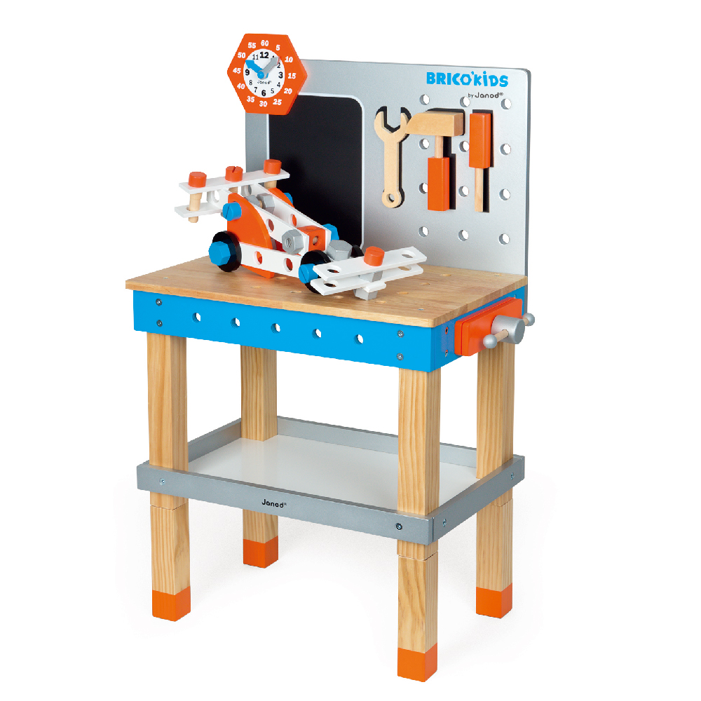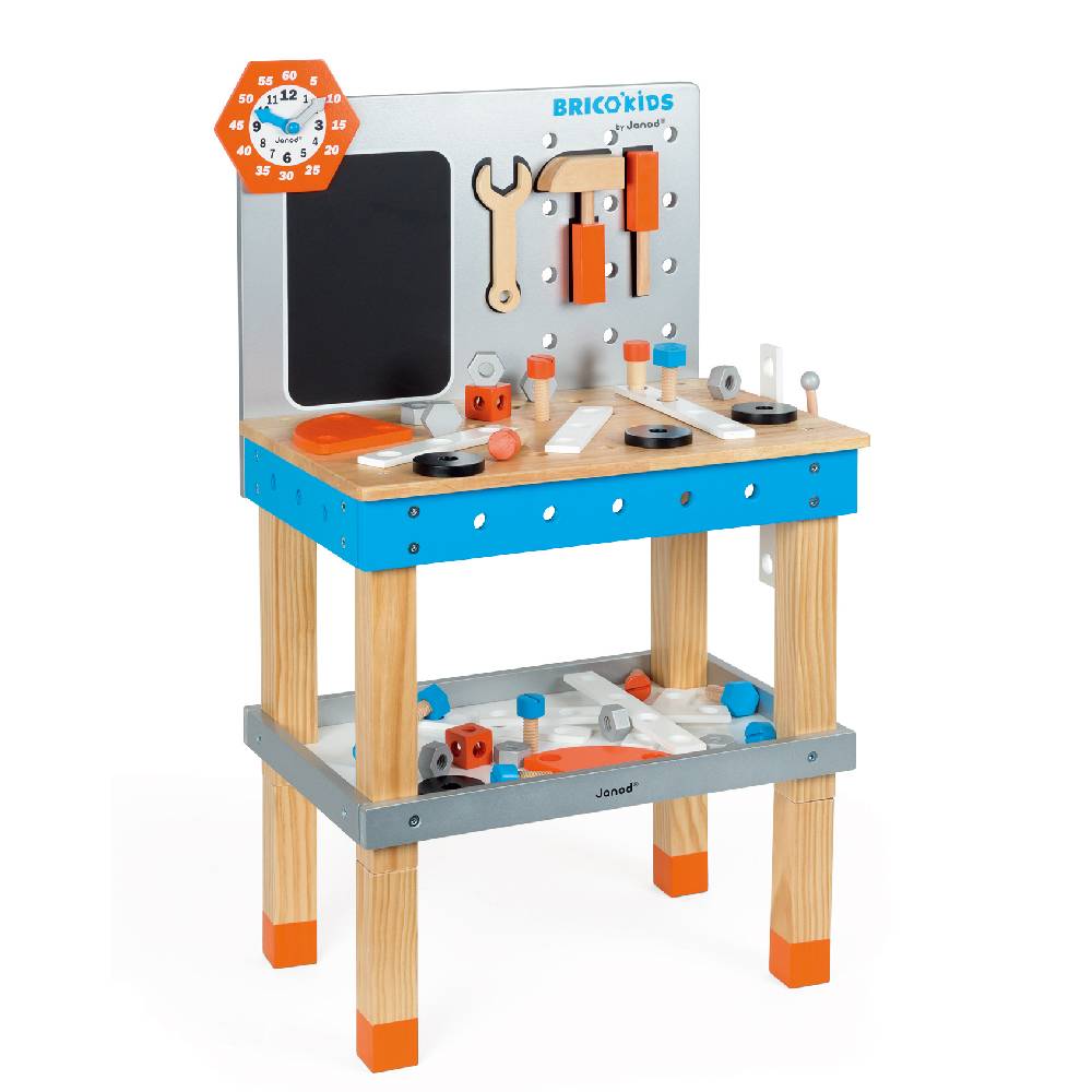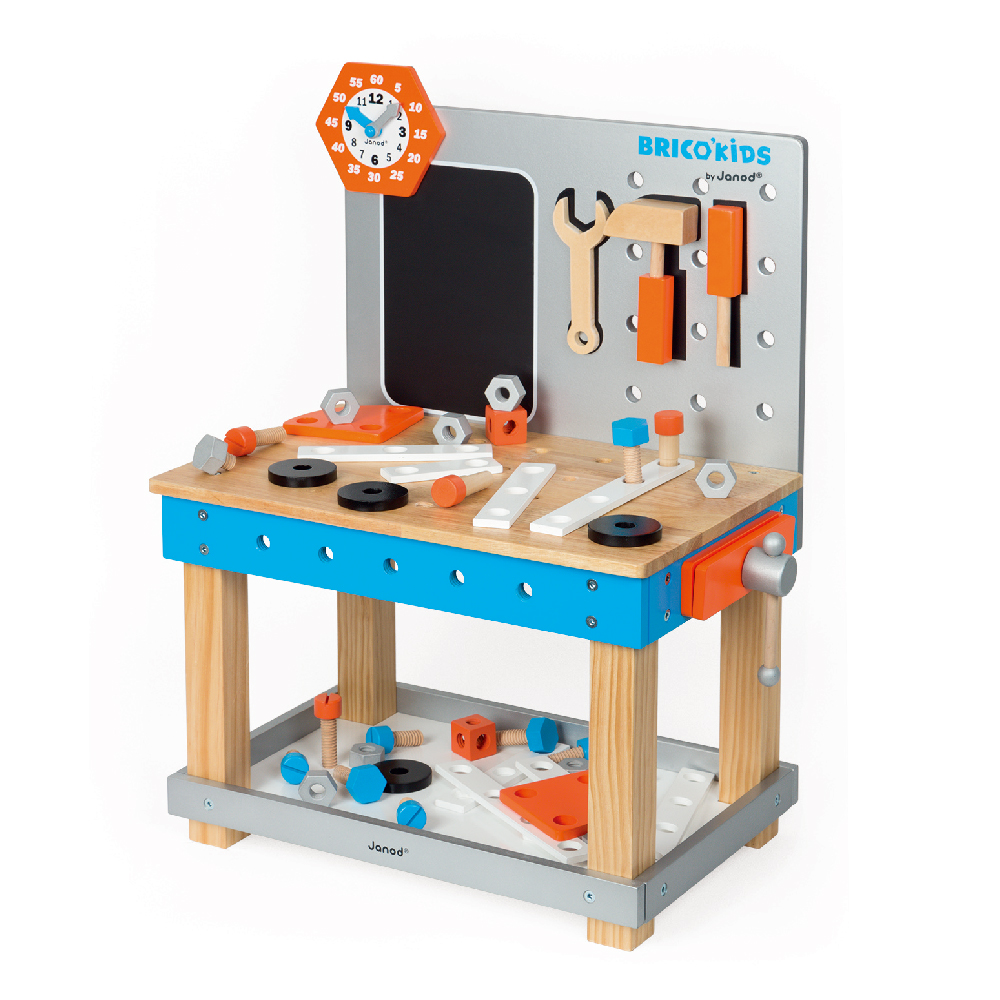 ✖︎童趣Outlet【法國Janod】小木匠創意玩-站式工作台(藍橘款)(只有1組)