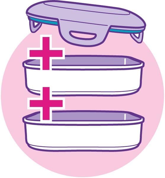 這款午餐盒由兩個隔層組成,總容量為 1.4 公升。可單層或雙層使用,完美適應您的需求和準備的食物,無論是午餐、小吃,還是兩者兼備,因為上層隔層是防水的。非常適合盛裝醬汁菜餚!