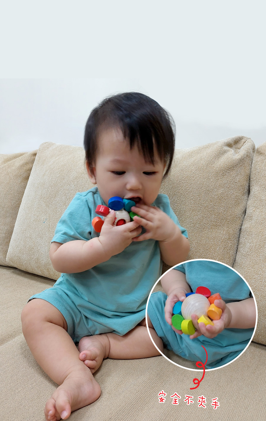 材質 : 彩虹搖鈴/山毛櫸、金屬、聚酯纖維,嘎嘎串珠/山毛櫸、ABS、聚酯纖維