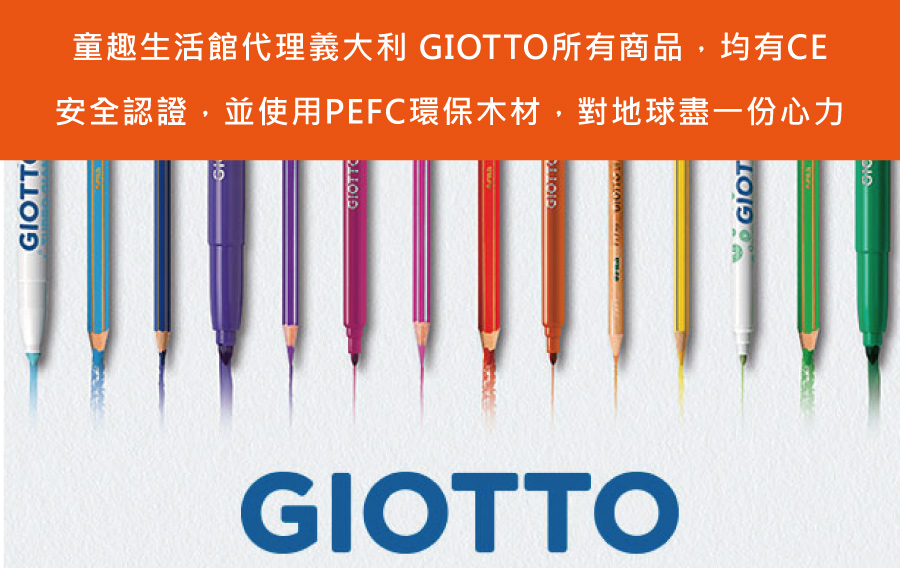 自1920年以來GIOTTO就是義大利傑出的品牌,也成為兒童和幼兒在繪畫方面的代名詞。在歷經約半個世紀,GIOTTO隨著世代的演變及創造性的需求,不斷進化產品,並朝著今日與未來孩子們的需求前進。孩子的創造力是無限的,GIOTTO知道人們在生活中每一刻都有不同的需要,而小小藝術家需要我們更多的關注。 而GIOTTO系列,一個繪畫的代名詞,包含了專業的彩色筆、彩色鉛筆、所有產品都經過深入的研究和嚴格的品質測試,堅持給三歲以上的孩子最適合及最安全的保證。